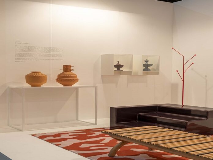 CGN presenta en Zona Maco 2022 una serie llamada Still Life, con piezas de barro del artista visual Edgar Orlaineta; de Todomuta Studio, una mesa de centro con acero inoxidable y madera de nogal; el banco Molcajete de Carlos Torre Hütt, elaborado con piedra colorada, así como el armario Redilas, inspirado en los transportes de estaquitas que circulan por el país.