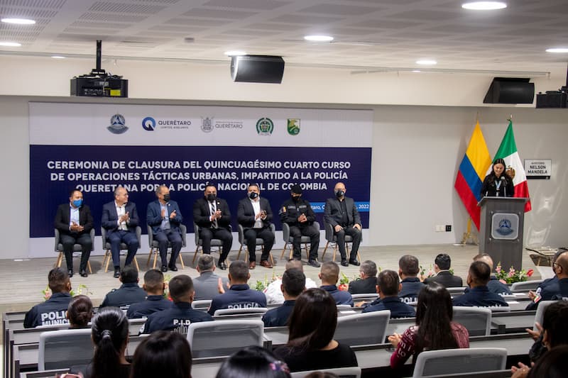 Un total de 78 elementos de la policía queretana han sido capacitados por la Policía Nacional de Colombia, en materia de Operaciones Tácticas Urbanas, con ello se sigue dando cumplimiento al objetivo trazado en el Programa Estatal de Seguridad de tener más y mejores policías al servicio de las familias queretanas.