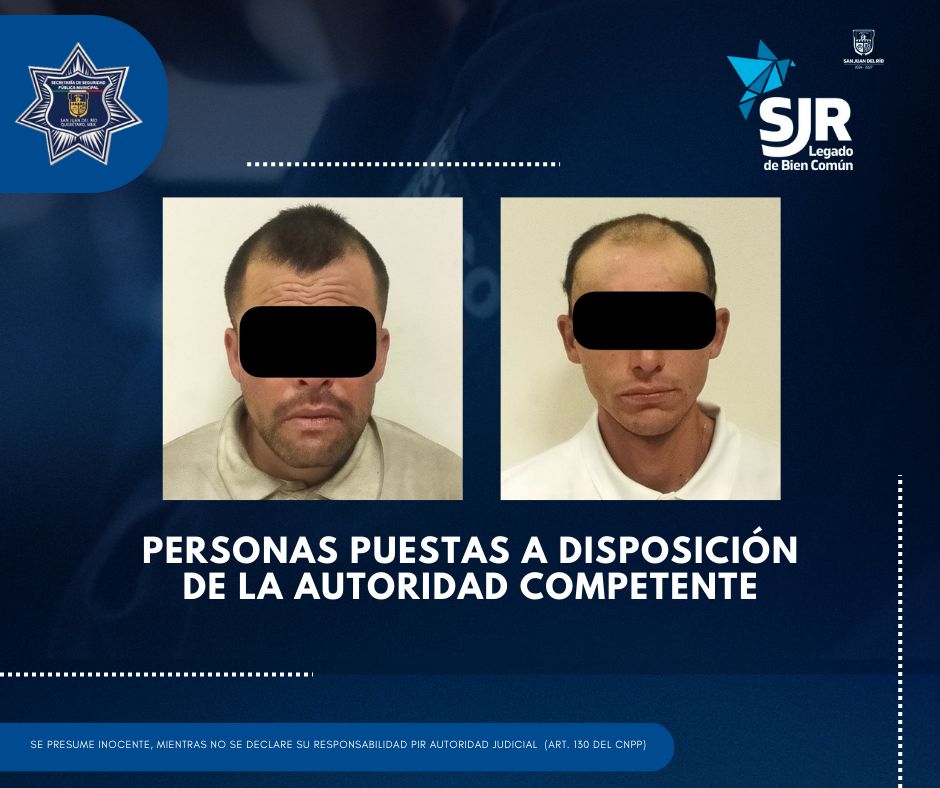 Elementos de la Secretaría de Seguridad Pública Municipal de San Juan del Río (SSPM-SJR), realizaron la detención de dos personas identificadas como Steven “N.” y Juan Carlos “N.”, quienes fueron señalados por el robo de una estructura metálica tipo semáforo perteneciente al municipio.